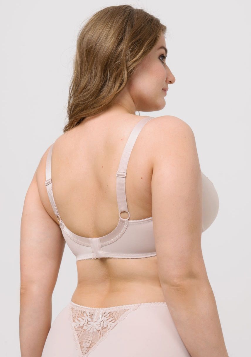 Бюстгальтер на каркасах с мягкой чашкой. Чашки овальной формы с диагональным членением создают округлую наполненную форму, эффектно приподымая грудь. Широкий стан плотно облегает тело, снимает нагрузку с плечевого пояса и обеспечивает стабильную комфортную посадку бюстгальтера на фигуре.