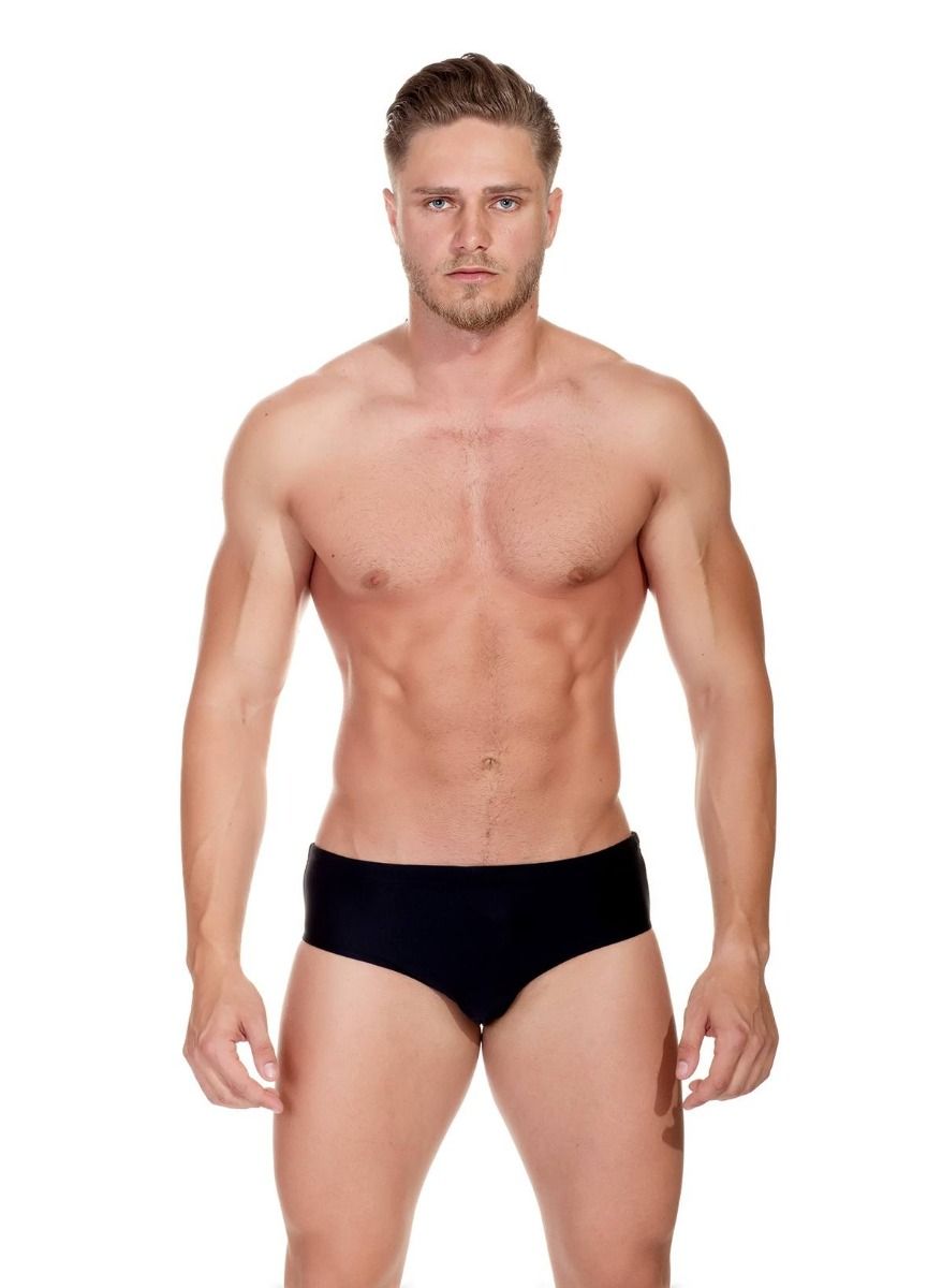 Мужские пляжные плавки со средней линией талии и средней шириной бочка. Пояс на узкой резинке.